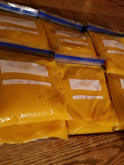 Today is Monday of Thanksgiving week and I’ve been cooking down pumpkins! Cooking and Fibromyalgia don’t often go together!! Good thing I had my handy list available to keep me on track! (Fibro-fog!) That list said I was to cook down pumpkins today for pie! Did I succeed? Well, 4 pumpkins gave their lives for our Thanksgiving table, yielding enough for 5 pies plus about 10 more throughout the coming year which was frozen in 3 cup increments!